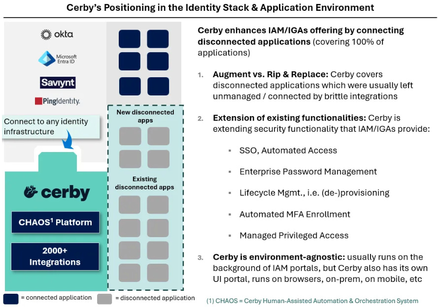 Cerby’s positioning is direct. Become the agentic identity layer for the applications and identities that the rest of the market cannot touch. Own the workflows, not the widget. That is how you earn long-term data and process control in identity.